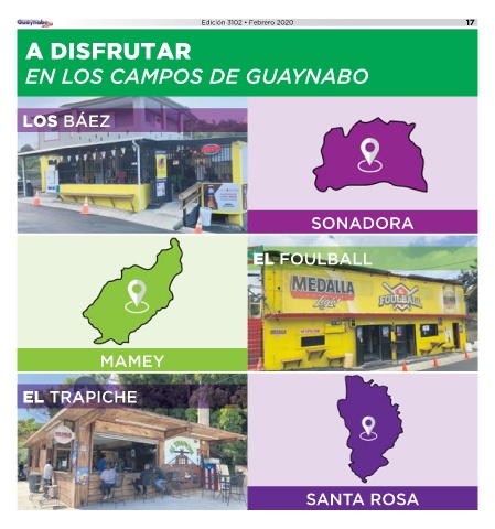 Edición 3102 • Febrero 2020 17 A DISFRUTAR EN LOS CAMPOS DE GUAYNABO LOS BÁEZ SONADORA EL FOULBALL MAMEY EL TRAPICHE SANTA ROSA