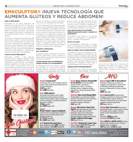 ción muscular “supra máxima”. Utiliza una El Tratamiento toma 30 minutos y deben Diciembre Solo $125 (por sesión) / Reg.