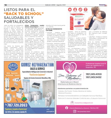 fortaleciendo nuestro sistema catarros, virus, afecciones de • Hongos Shitake y Reishi Or- información llama al 787-492-