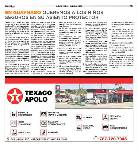 La Liga Atlética, en el barrio Hato se preste a transportar en su ve- beros de Puerto Rico. Llame 7. Es conveniente que los padres en que un agente de la Policía