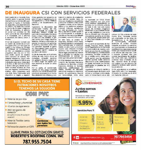 para recibir ayuda en asuntos El CSI de Guaynabo es la primera ágil y eficiente los trámites que patronales, servicios profesiona- a procurar servicios, sino que