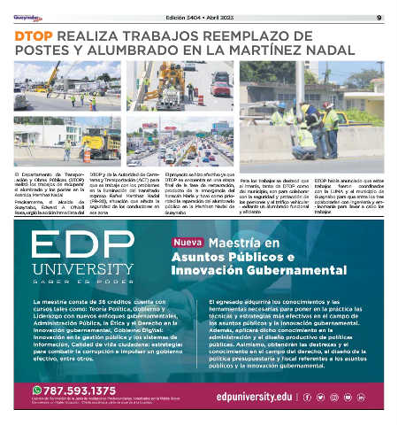 Precisamente, el alcalde de (PR-20), situación que afecta la ridad la reparación del alumbrado los peatones y el tráfico vehicular colaborarían con ingeniería y em-