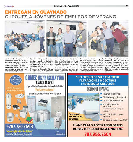 recibido sus cheques en reconoci- oficina y el liderazgo. bución al Municipio de Guaynabo. de estos jóvenes en el cumpli-