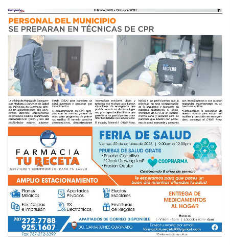 ció un adiestramiento que com- El adiestramiento en CPR cum- podrían ocurrir en distintos luga- nuestros ciudadanos. El adies- “Fortalecemos la capacidad de