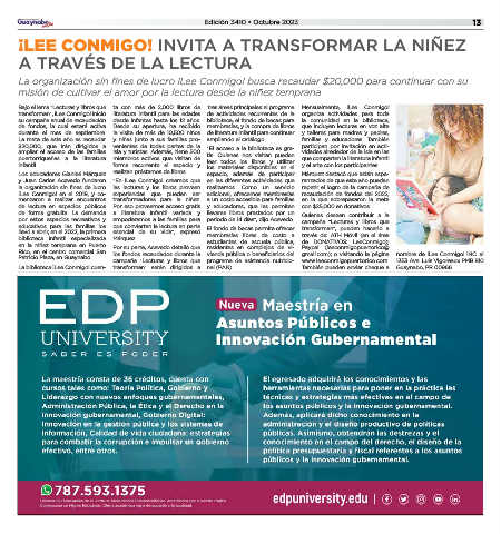 La biblioteca ¡Lee Conmigo! cuen- transforman” serán dirigidos a nal (PAN). También pueden enviar cheque a Guaynabo, PR 00966.