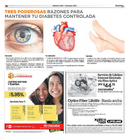 • Retinopatía diabética: Es el daño a los vasos sanguíneos • Cuidar el colesterol: Es un tipo de grasa que se acumula • Cuidando tus pies: Consulta a tu médico primario para