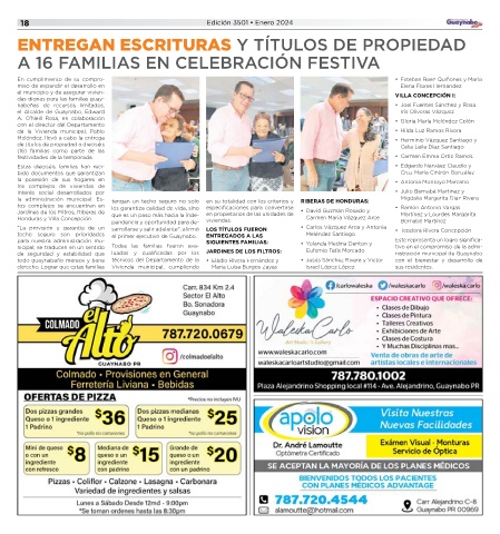 Estas dieciséis familias han reci- • Edgardo Narváez Claudio y