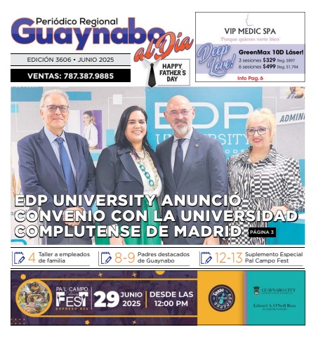 VENTAS: 787.387.9885EDICI%u00d3N 3606 %u2022 JUNIO 2025Taller a empleados 4de familiaPadres destacados 8-9de GuaynaboSuplemento Especial 12-13Pal Campo FestEDP UNIVERSITY ANUNCI%u00d3 DP UNIVERSITY ANUNCI%u00d3 CONVENIO CON LA UNIVERSIDAD ONVENIOCON LA UNIVERSIDAD COMPLUTENSE DE MADRIDOMPLUTENSE DE MADRIDP%u00c1GINA 3